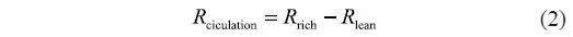 式中,Rcirculation表示一次循环中,溶液回收的CO2 量,mol/L。