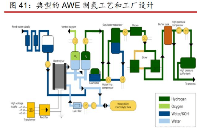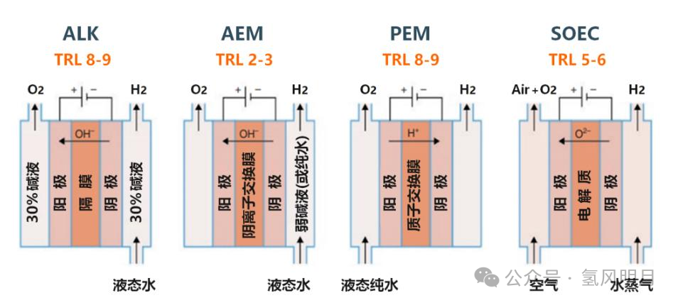 碱性水电解制氢:碱性水电解制氢技术是一种成熟的制氢方法,其电解槽的核心组件是隔膜,通常由石棉制成,要作用是分离氢气和氧气。电解槽的电极主要由金属合金构成,例如镍钼(Ni-Mo)合金,这些电极在电解过程中催化水分子分解,生成氢气和氧气。