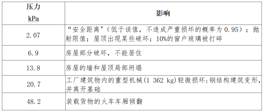 表4 超压对建筑物的影响(近似值)
