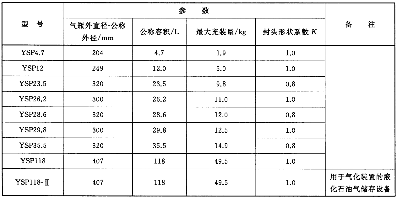 3)根据国家标准《液化石油气钢瓶》GB/T 5842—2022 的规定,液化石油气常用钢瓶型号和参数如表 12-1 所示,单个钢瓶的最大充装量为 49.5kg。为有效控制和减少火灾危害,最多允许1个钢瓶放置在建筑内使用,当宾馆、饭店等用气量较大的建筑所需使用量大于 50kg时,气瓶不允许全部放置在建筑内,而需要在建筑外单独设置一个气瓶存放间,该房间在气源布置、管道选型和敷设、供气设施、室内环境和安全装置等方面均应采取相应的安全防护措施。