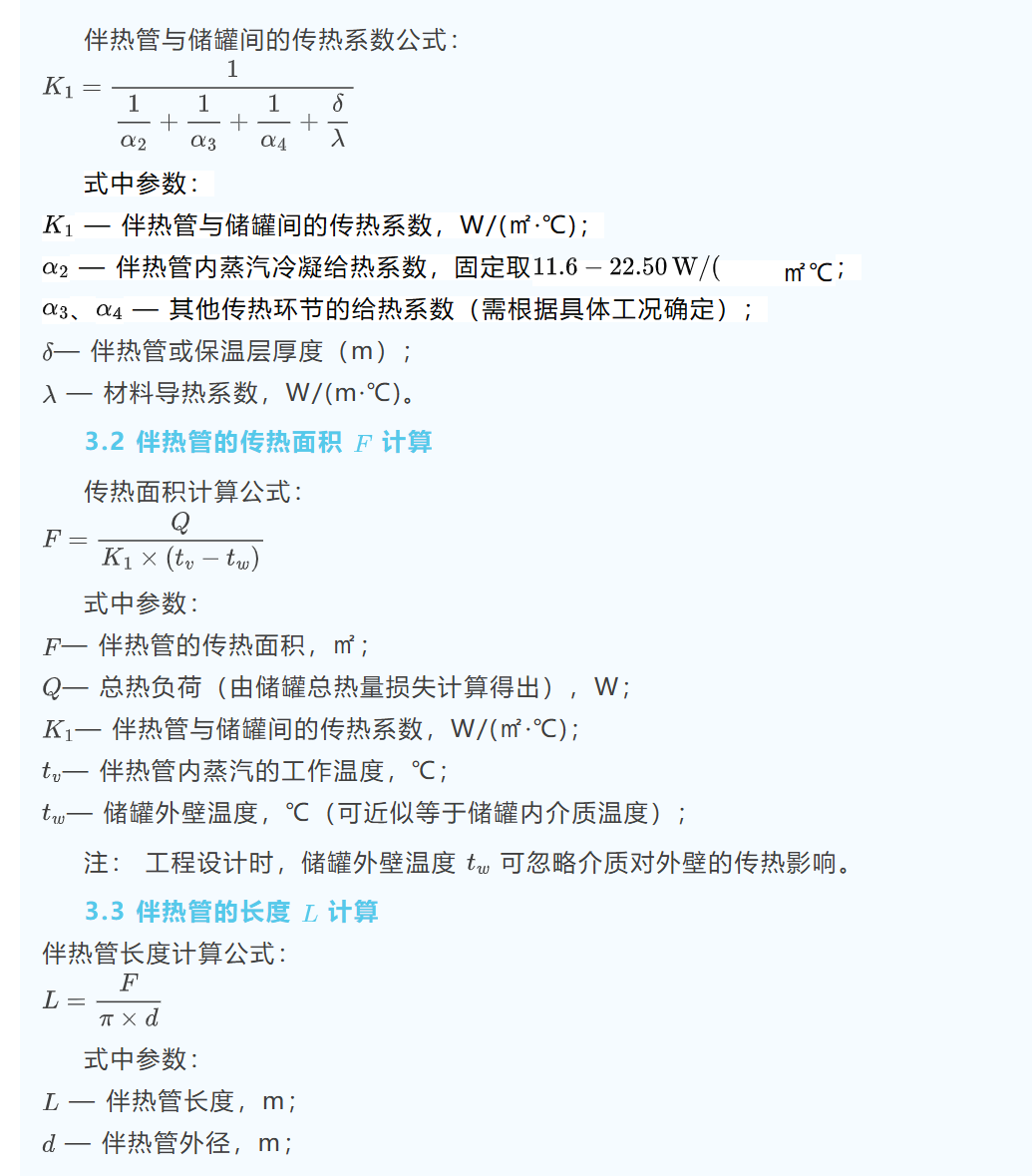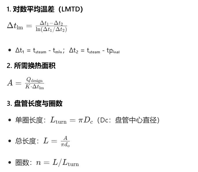 储罐伴热内盘管计算核心是热负荷→总传热系数 K→换热面积 A→盘管长度 / 圈数 / 压降,按稳态传热与自然对流 / 冷凝模型计算。