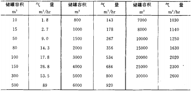 表1列出了常用储罐因外界气温变化所需的供气量。