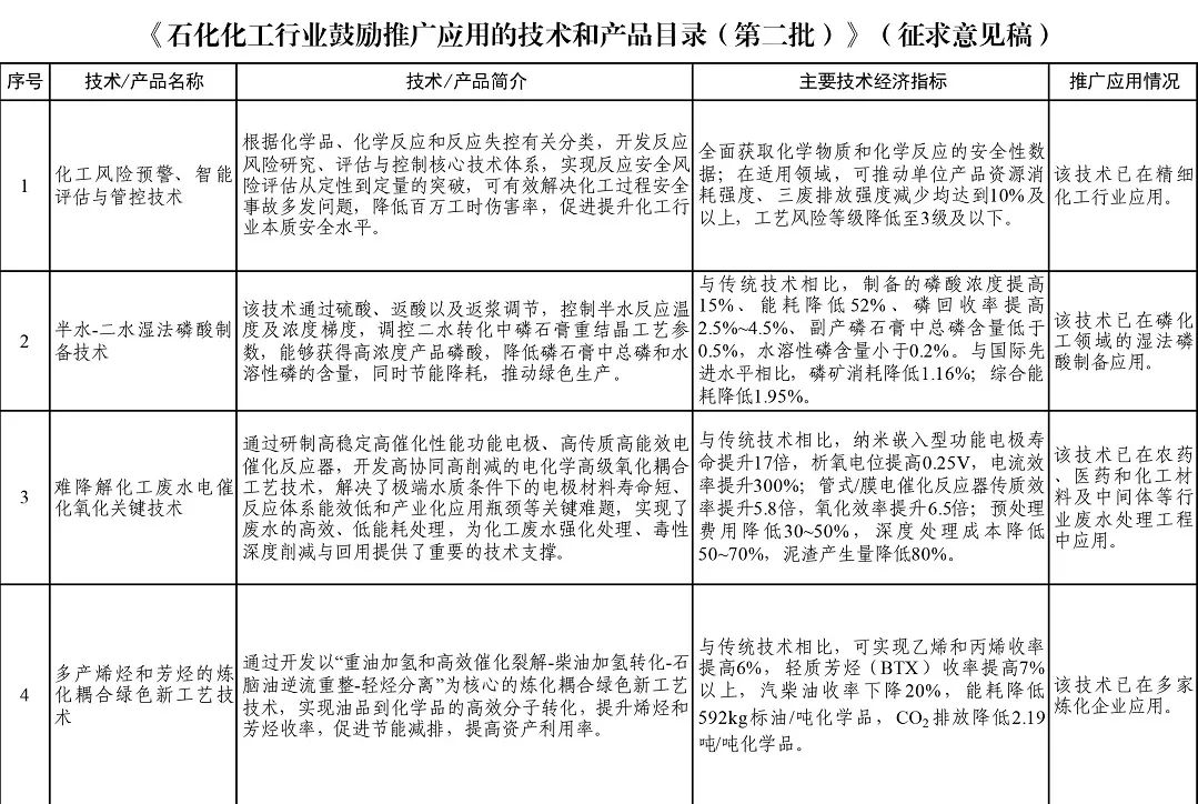 《目录》涉及精细化工、橡胶、磷化工、石油化工、煤化工等行业的28项技术和产品,其中一些技术和产品具有风险预警、智能管控、在线监测、数据采集等功能,将为推动石化化工行业高端化、智能化、绿色化发展提供强有力支撑。