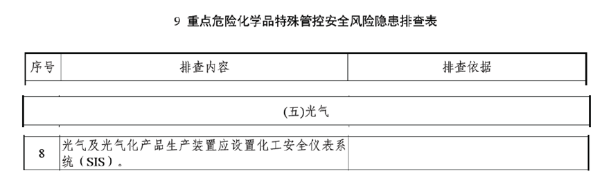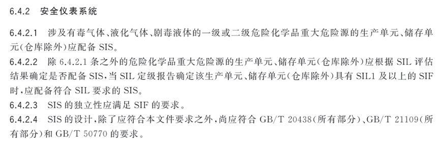 三、第一条以外的,并且不涉及两重点一重大的场合,应符合监管文件、设计文件等的要求。原则上,宜据SIL评估结果确定是否配备SIS,当SIL定级报告确定该场合具有SIL1及以上的SIF时,应配备符合SIL要求的SIS。