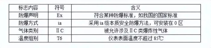 注 : 该标志中无温度组别项 , 说明该仪表不与爆炸性气体直接接触 。