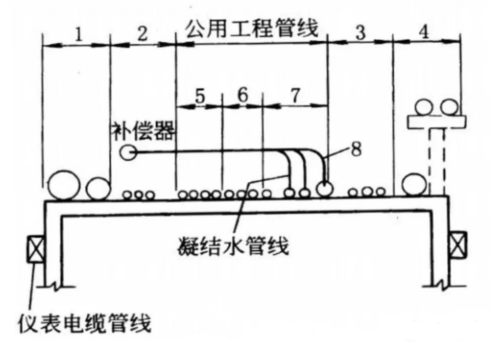 2) 管廊上的管道需热补偿时,应从管道的起点至终点,对整个管系进行分析,以确定合理的热补偿方案。